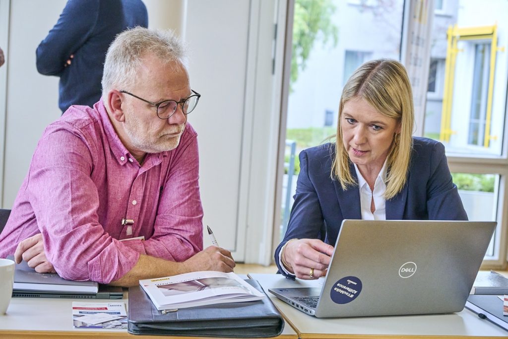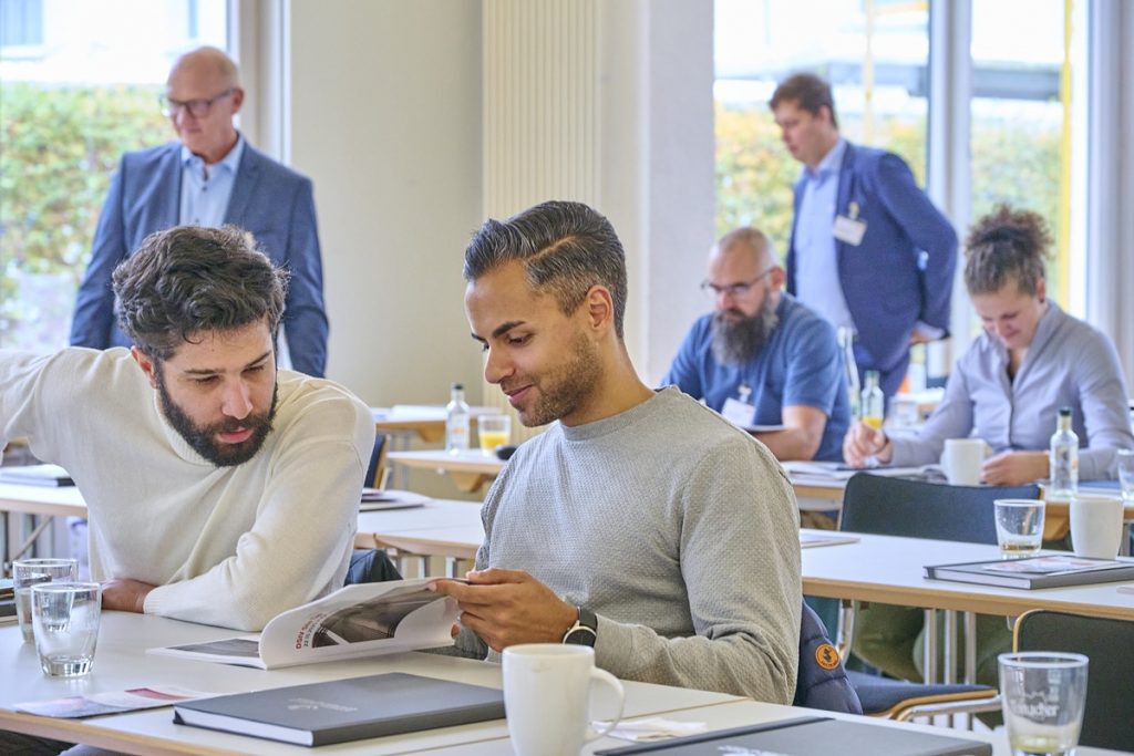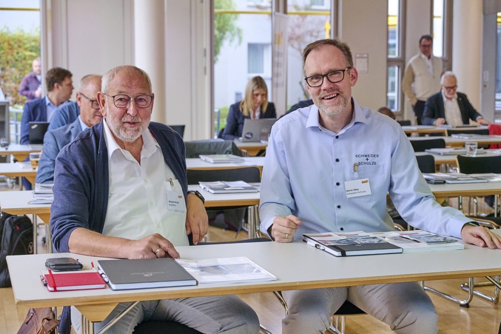 Maximilian Koffler und Hussam Allafi von der Firma singold zeigten sich erfreut über den Tagungsband, den sie begleitend zu den Vorträgen nutzten