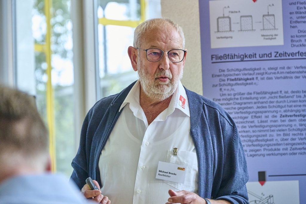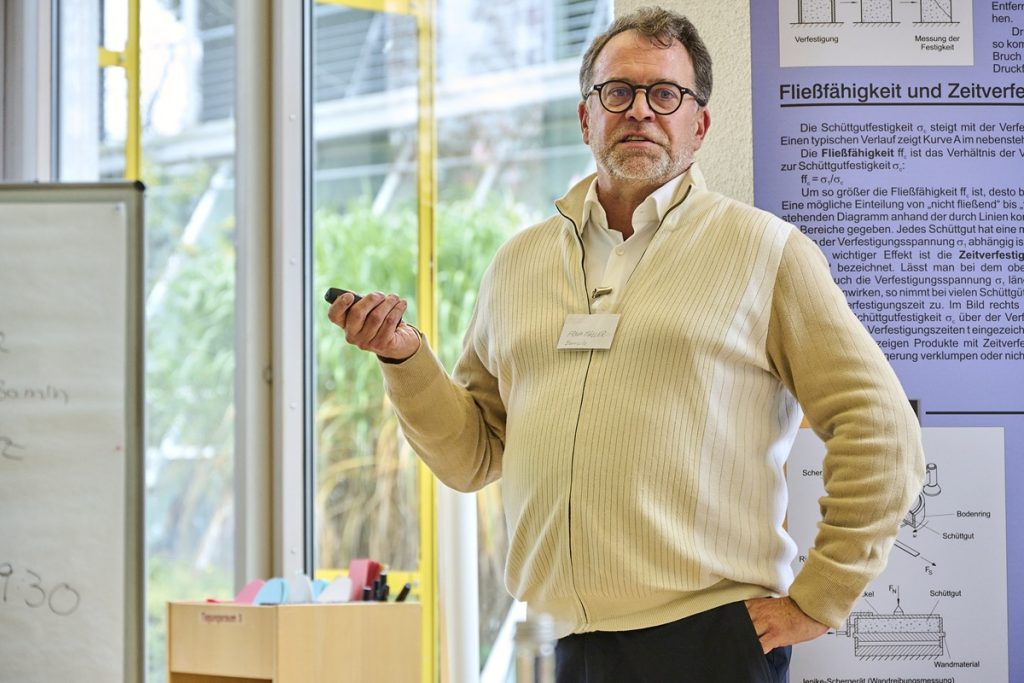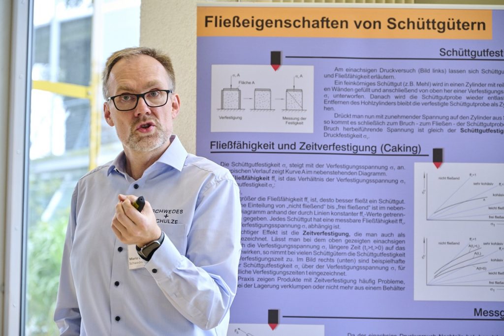 Mario Dikty, (Schwedes und Schulze) führte durch den Tag und referierte selbst über: „Siloauslegung: Massenfluss – Massenfluss – Massenfluss“. Großes Lob von den Teilnehmern für die hervorragende Moderation und den Grundsatzvortrag.