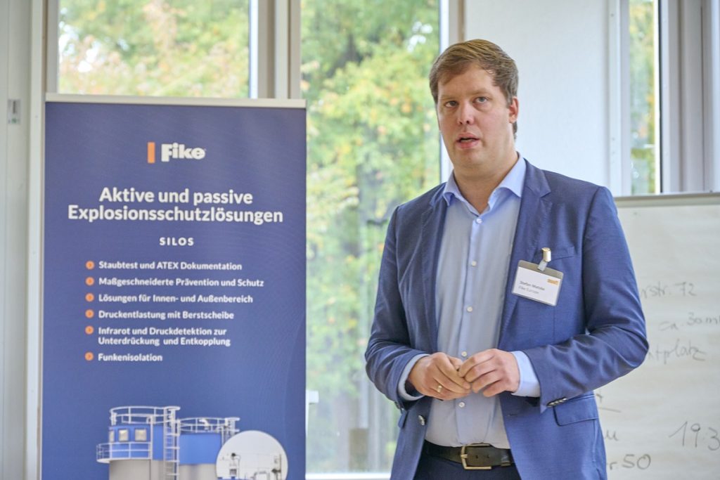 Stefan Matzke (FIKE Europe) sprach zum Thema Beratung für konstruktiven Explosionsschutz rund um das Silo.