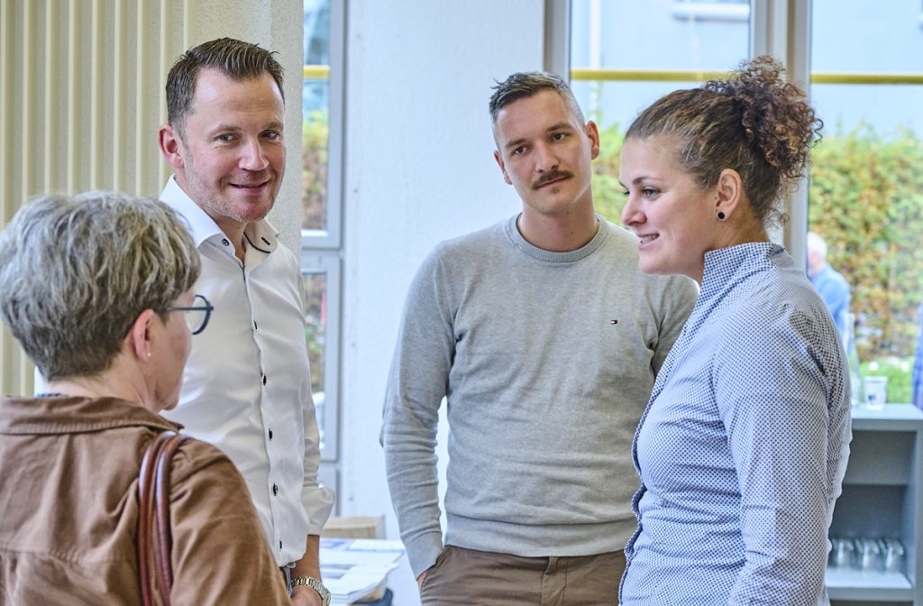 Claudia Bartl, Matthias Nothhelfer, Felix Horber (alle SGH Schüttguthandling GmbH & Co.KG) im Gespräch mit Saskia Hanauer (BASF SE)
